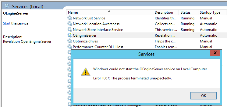 Fix OEngineServer Service Error 1067: The Process Terminated Unexpectedly